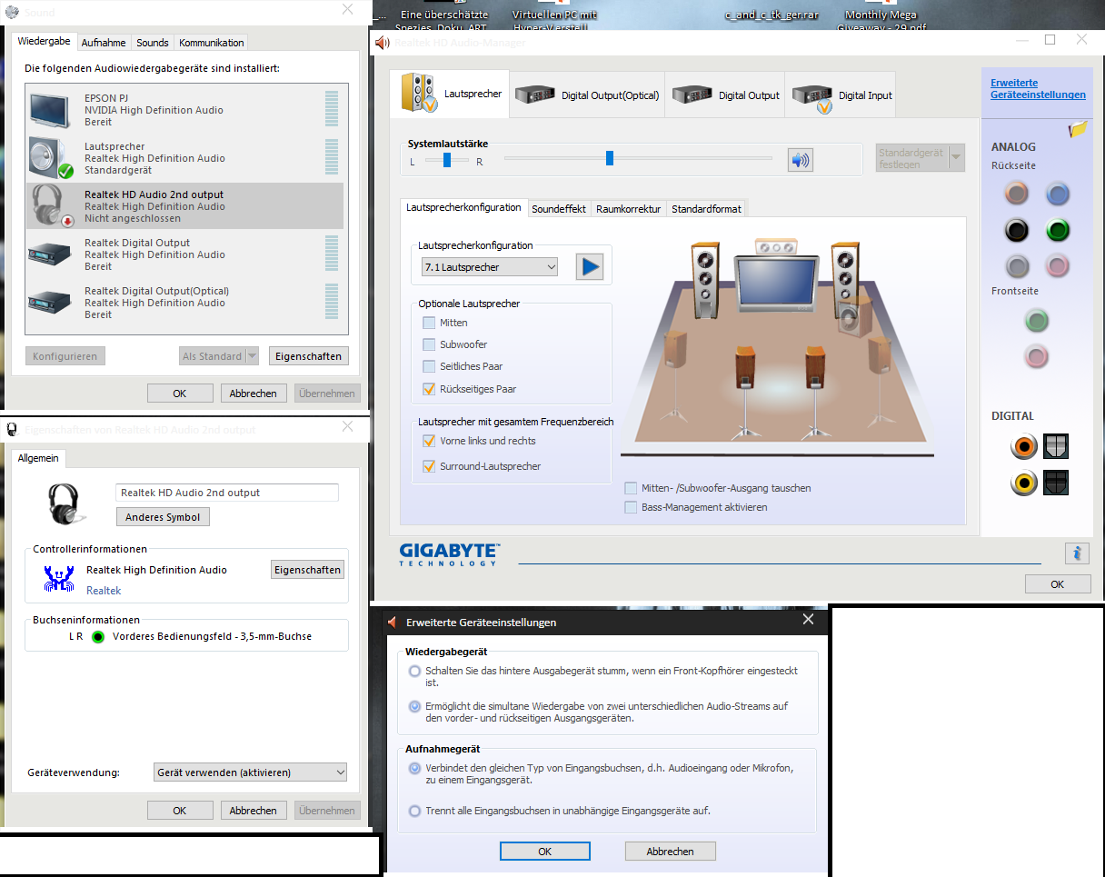ich habe am Rearpanel der Onboard Soundkarte (Realtek) folgende Belegung