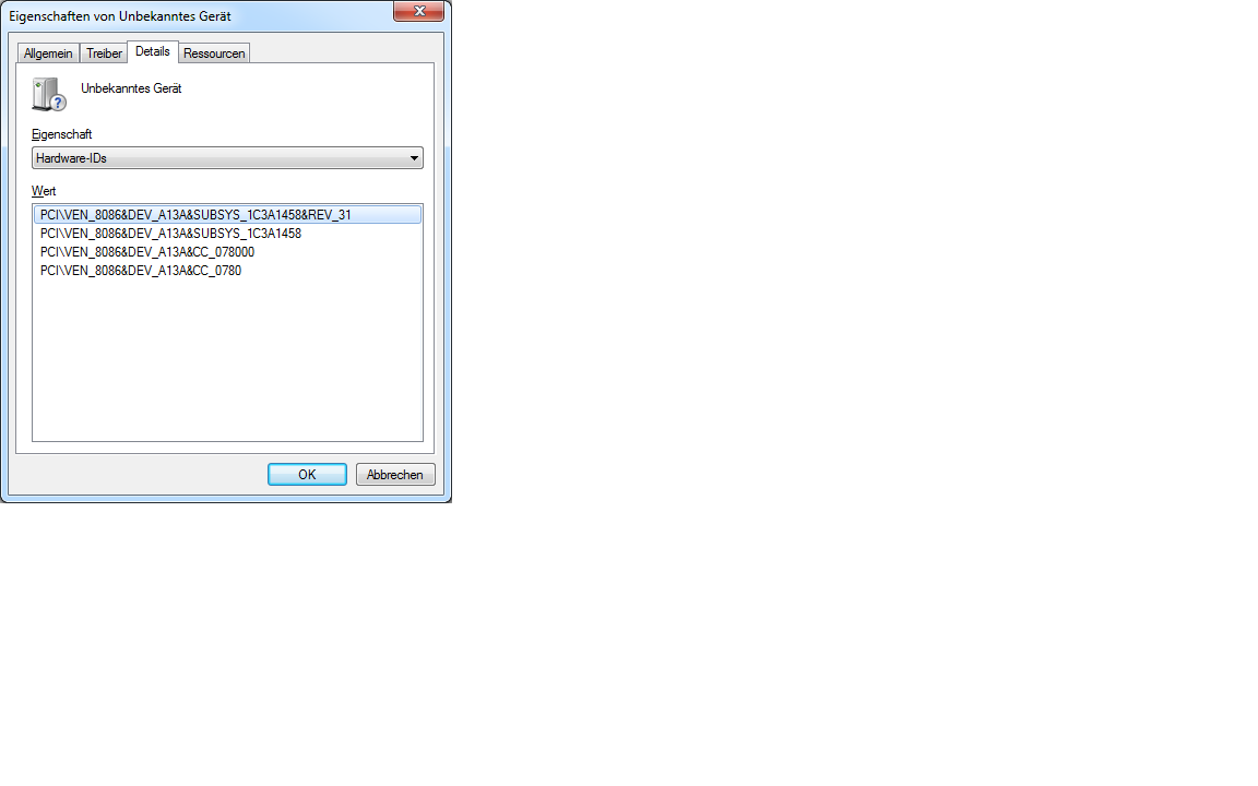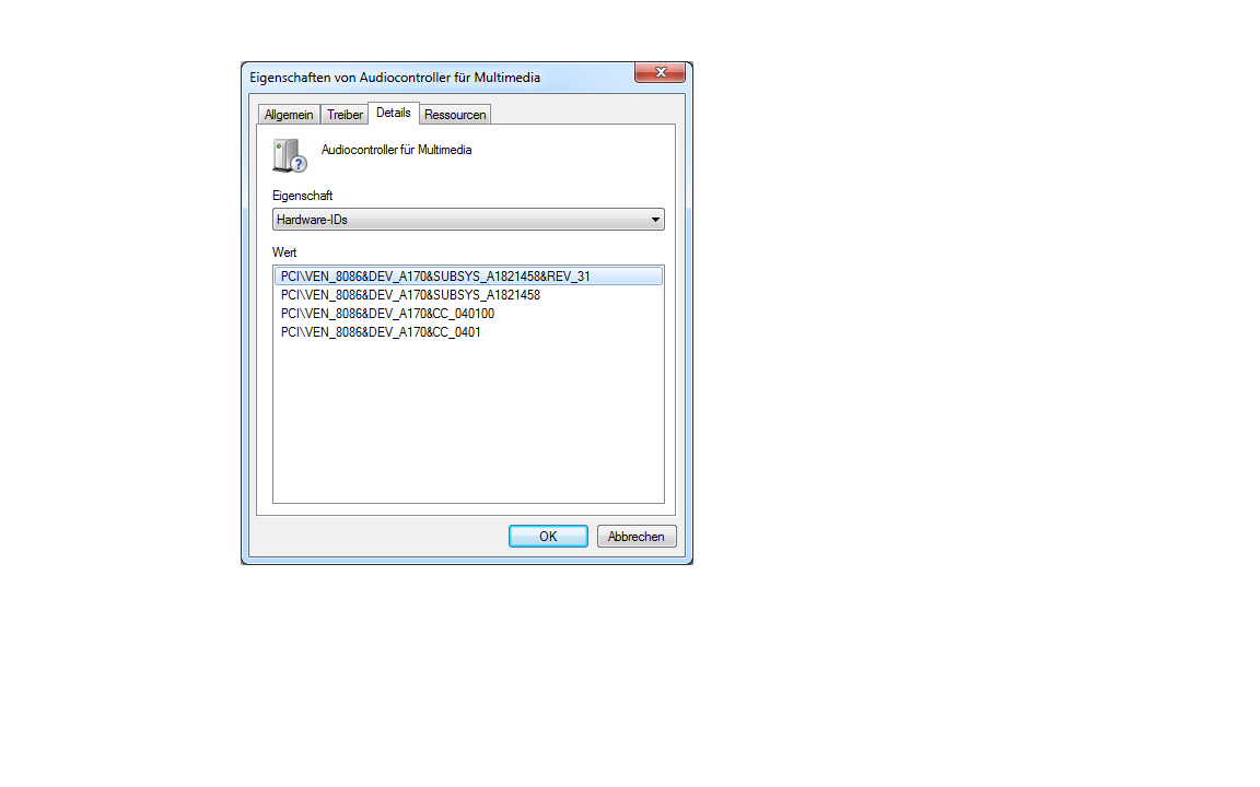 Im Gerätemanager wird mir der Audiocontoller als unbekanntes Gerät angezeigt,hier die Hardware ID.