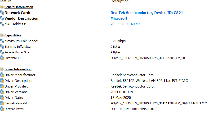 Die verbaute Netzwerkkarte hat eine Übertragungsrate von 433/433.
