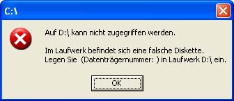 Wenn die Fehlermeldung " Im Laufwerk befindet sich eine falsche Diskette, legen Sie Datenträger mit der Nummer" etc. ein dann ist es nach Erfahrung ein Problem mit dem Dateisystem.