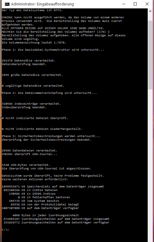 Ich kann auch nur ein chkdsk via cmd machen bei dem aber nichts rauskommt.