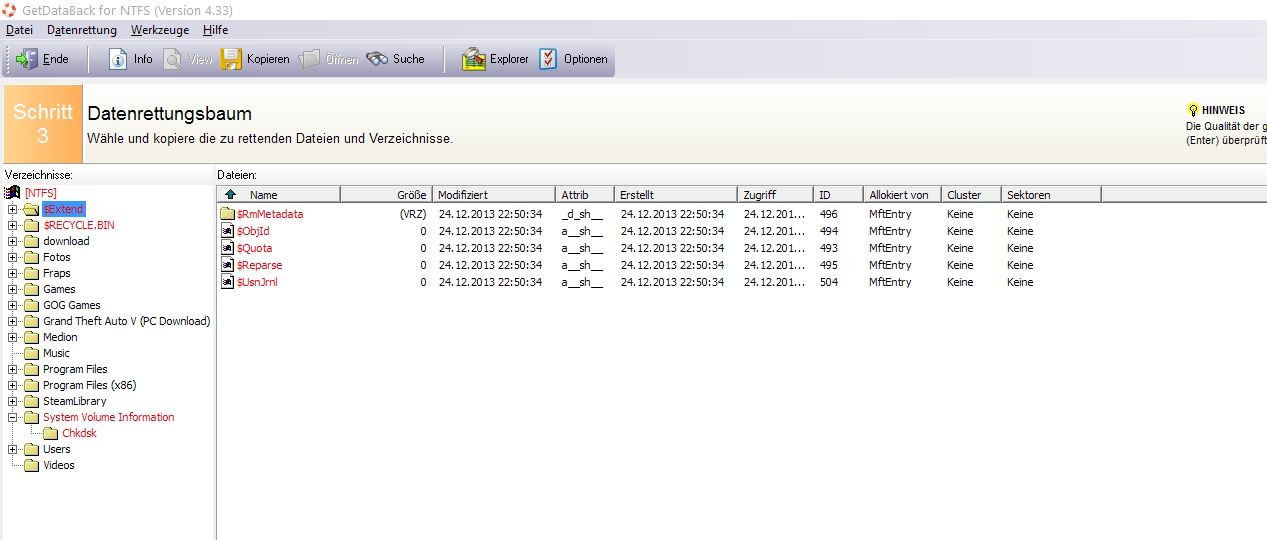 Ich habe mal das LW über GetDataBack for NTFS laufen lassen...