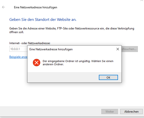 Bei Win 10 schaffe ich das nicht. Ich kann die IP-Adresse nicht eingeben, er schreibt immer "Datei nicht gefunden". Wenn ich im Datei Explorer auf die Netzwerkgeräte klicke, fragt er, mit welchem Browser ich das öffnen will- ich will aber mit dem Datei Explorer öffnen. Keine Chance.