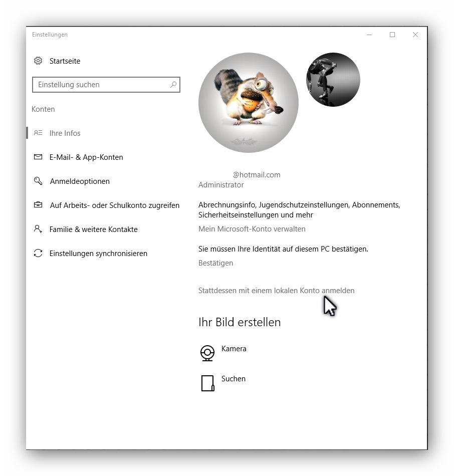Meldest Du Dich mit lokalem oder MS-Konto an?