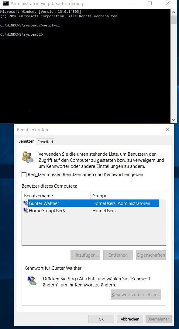 Das Vorgehen mit netplwiz ist ein "alter Hut", weil ich es genau so, wie von Dir im Kasten dargestellt, gemacht habe