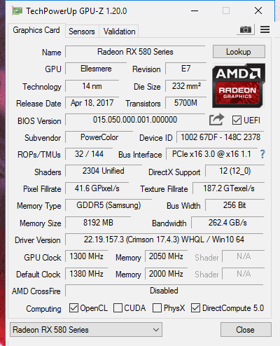 Ergänzung: das BIOS einer Rx 580 von Powercolor,