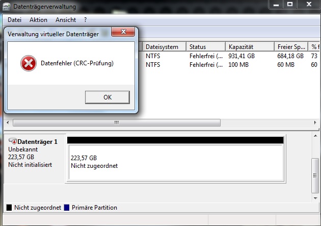 Auf SSD Festplatte kann nach Windowsabsturz nicht mehr zugegriffen werden