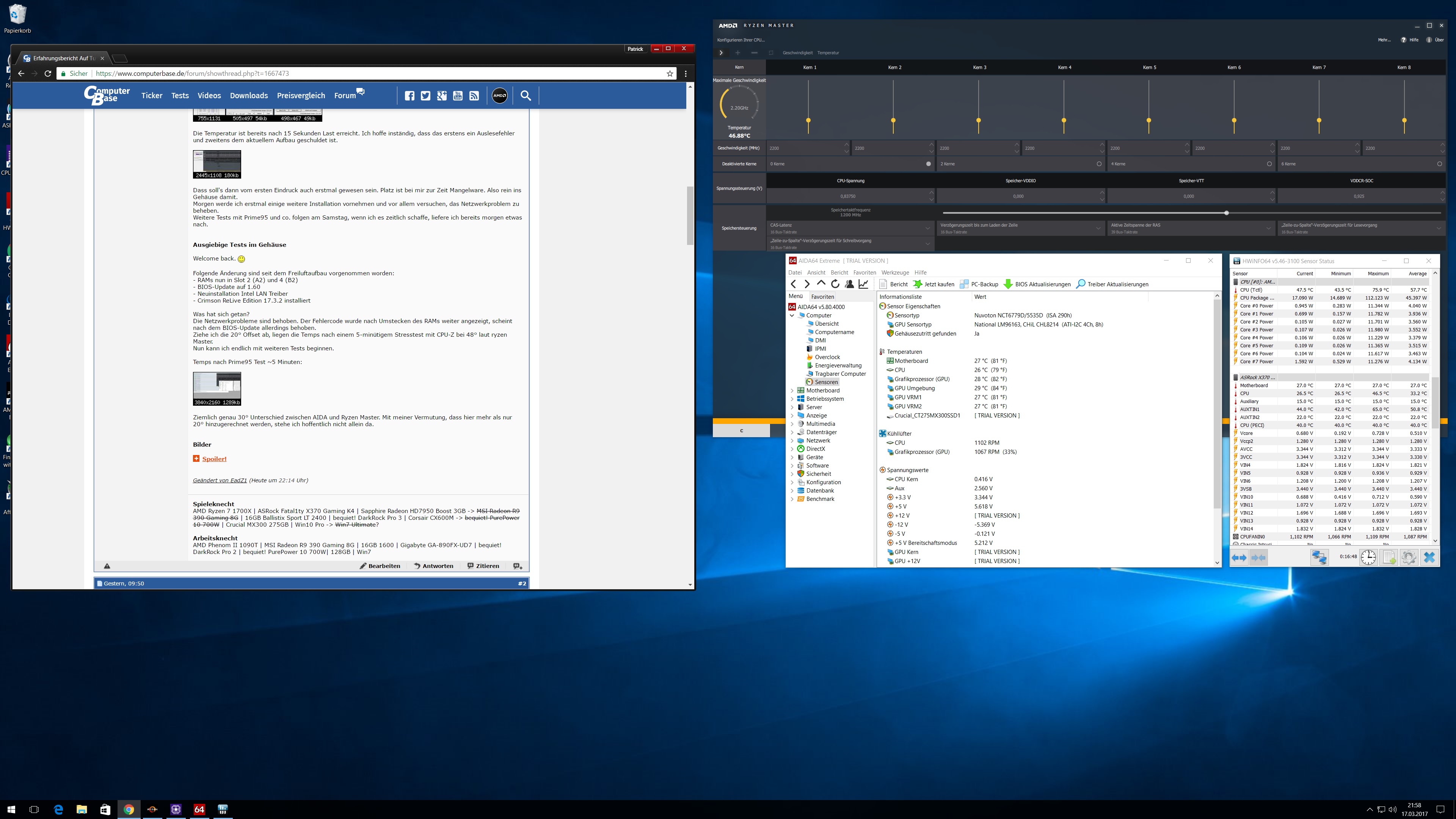 Ziemlich genau 30° Unterschied zwischen AIDA und Ryzen Master. Mit meiner Vermutung, dass hier mehr als nur 20° hinzugerechnet werden, stehe ich hoffentlich nicht allein da.