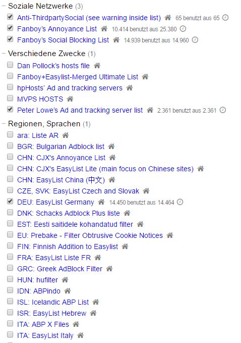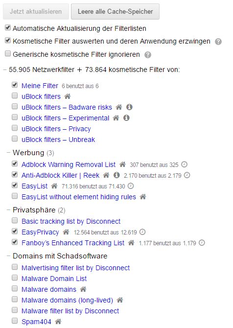 und Domains mit Schadsoftware würde ich auch als Filter aktivieren.