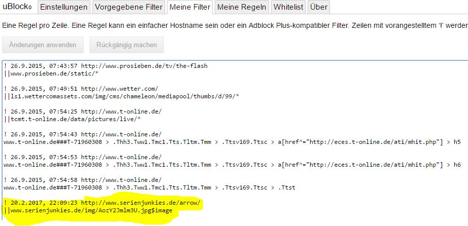frizzmaster schrieb:Bei mir auf serienjunkies.de alles in Ordnung. Chrome + uBlock Origin mit den Filterlisten uBlock Filters, EasyList und EasyList Germany.