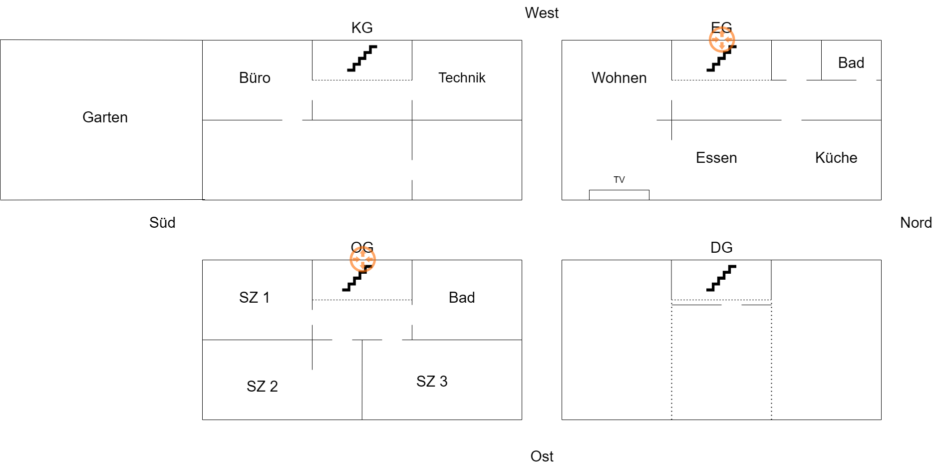 wir ziehen in eine Bestandsimmobilie (Holzständer Doppelhaushälfte, 165m² Wohnfläche) und ich stehe nun vor der Herausforderung, das Heimnetzwerk aufzubauen. Das Haus besteht aus KG (Souterran), EG, OG und DG, wobei die TAE im Technikraum im KG installiert ist - dort sollen auch die Hardwarekomponenten platziert werden. Es liegt nur VDSL (100 Mbit/s / 40Mbit/s) an, keine Glasfaser oder Kabel. Als Router kommt eine FritzBox 7530 in den Technikraum.