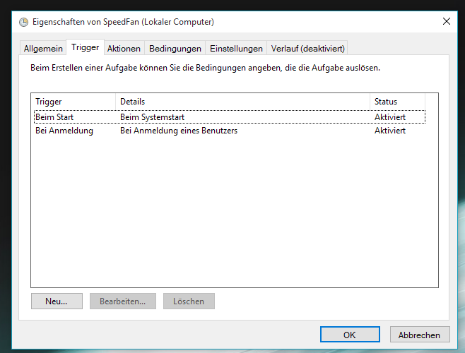 Und Windows 7 habe ich die Aufgabenplanung dazu genutzt, speedfan (software zu lüftersteuerung) und meine gaming mouse software (logitech) beim Systemstart auszuführen.