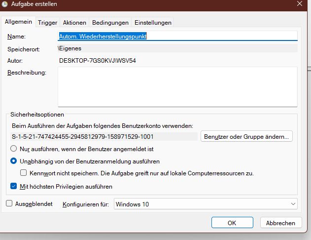 ich habe Windows neu installiert (wegen SSD-Wechsel). In der Aufgabenplanung hatte ich ein paar Aufgaben eingegeben (z.B. Auto-Wiederherstellungspunkt, Kopiervorgang für Sicherheitskopien...)