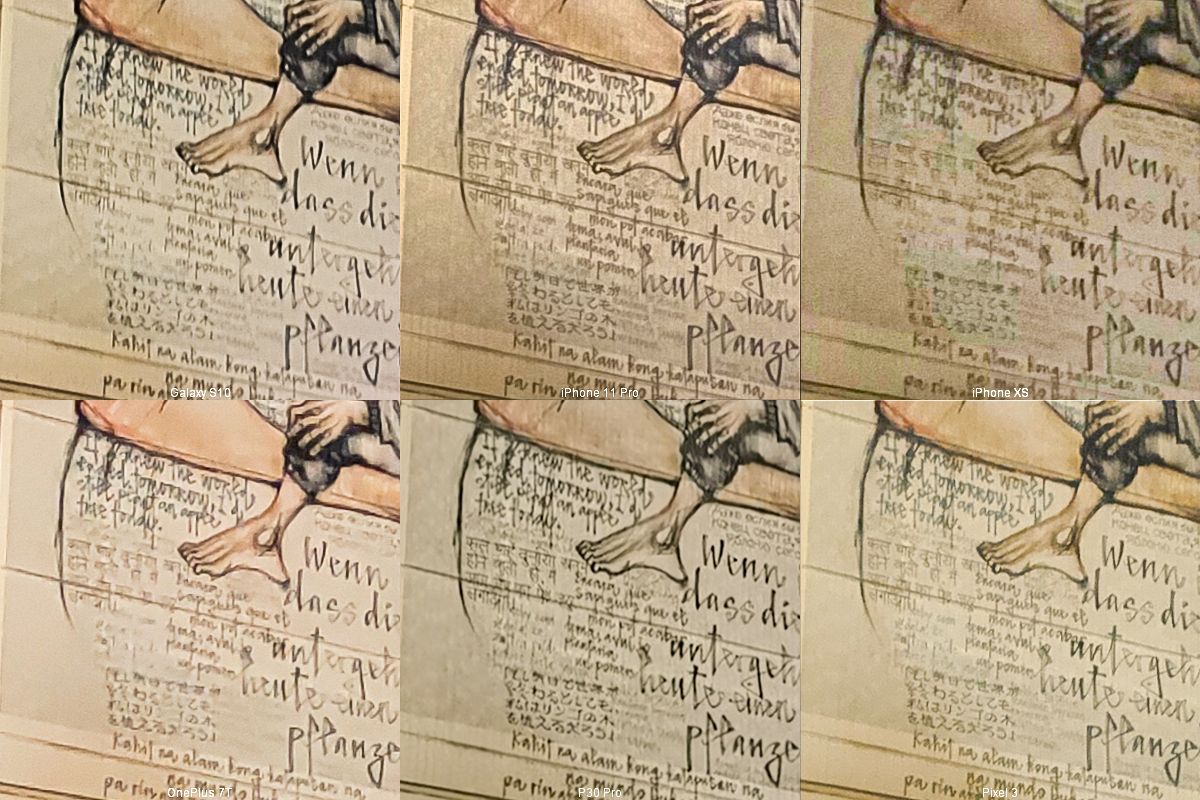 Das iPhone, sowie das Pixel haben deutlich mehr Details! Bis auf das Pixel 3 und iPhone XS sind die anderen Handys oft megal unscharf und detailarm, hier bügeln die JPG-Algorithmen viel zu viel platt. Hier ein paar Beispiele, manchmal im Photoshop aufgehellt oder SW gemacht wenn der Farbunterschied trügt.