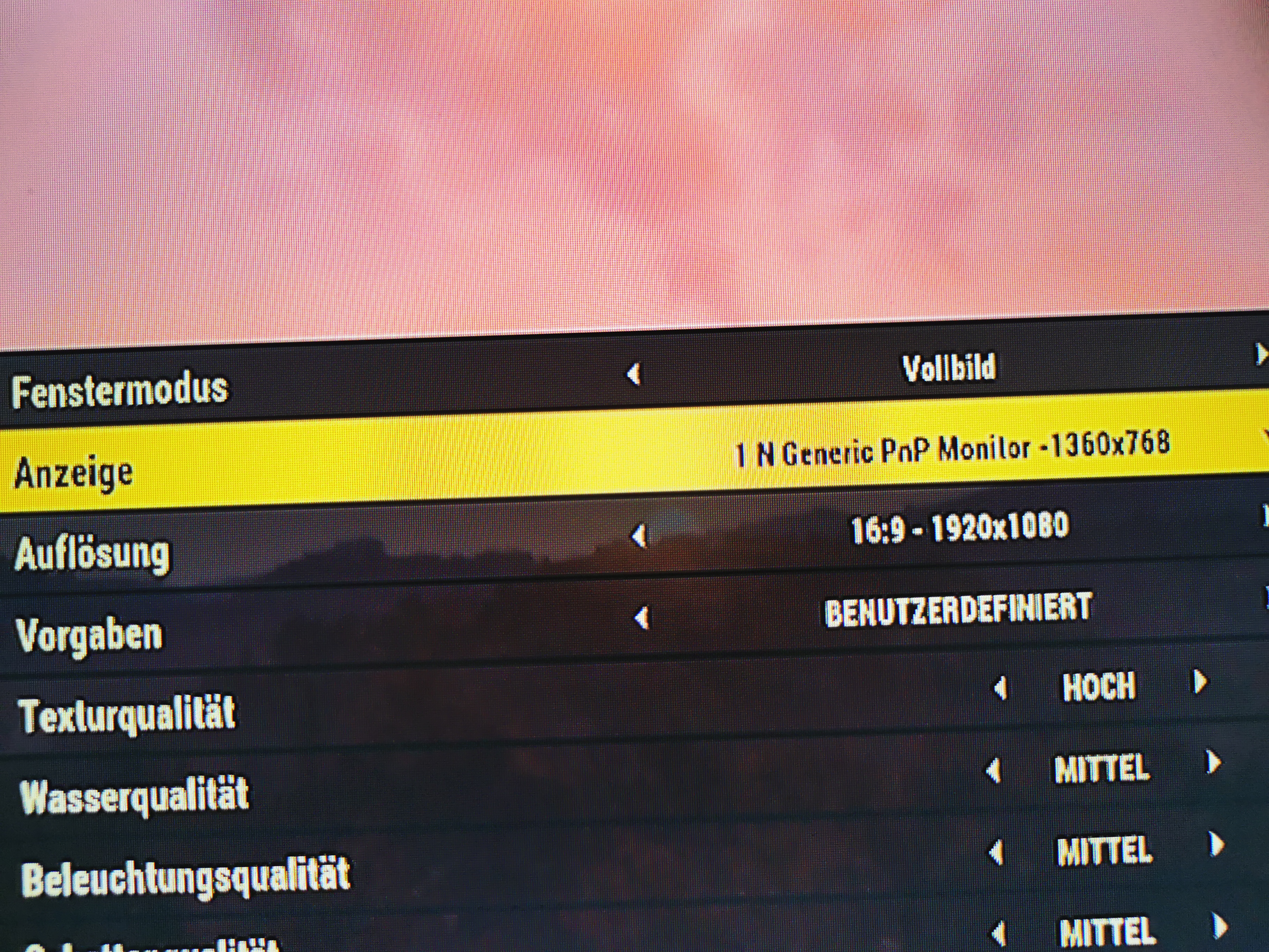 Ja das habe ich trotzdem springt es bei Spiel Start wieder um auf full HDMotorrad schrieb:Du solltest/ wolltest doch die native Auflösung deines Schirms (1360x768) verwenden und in die beiden Dateien eintragen!