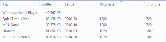 Mit Mediainfo müsste ich jede Datei einzeln überprüfen was sehr Zeitaufwendig wäre. Gibt es unter Windows 7 eine Funktion womit man das anzeigen lassen könnte?