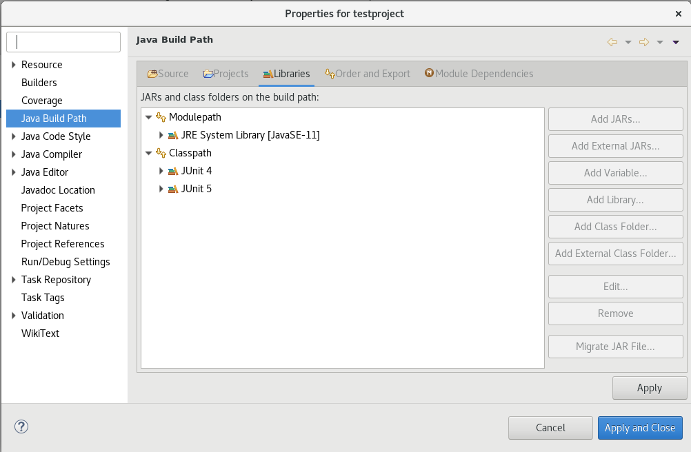 ich habe ein Problem beim Anlegen einer neuen Testklasse. Das Anlegen einer neuern Testklasse an sich funktioniert ja, aber danach zeigt Eclips Fehler an, die darauf hindeuten, dass auf etwas nicht zugegriffen werden kann (siehe Anhang). Ich habe schon überprüft, ob unter Build Path => Configure Build Path => Libraries die Bibliothek vorhanden ist. Sie ist definitiv vorhanden.