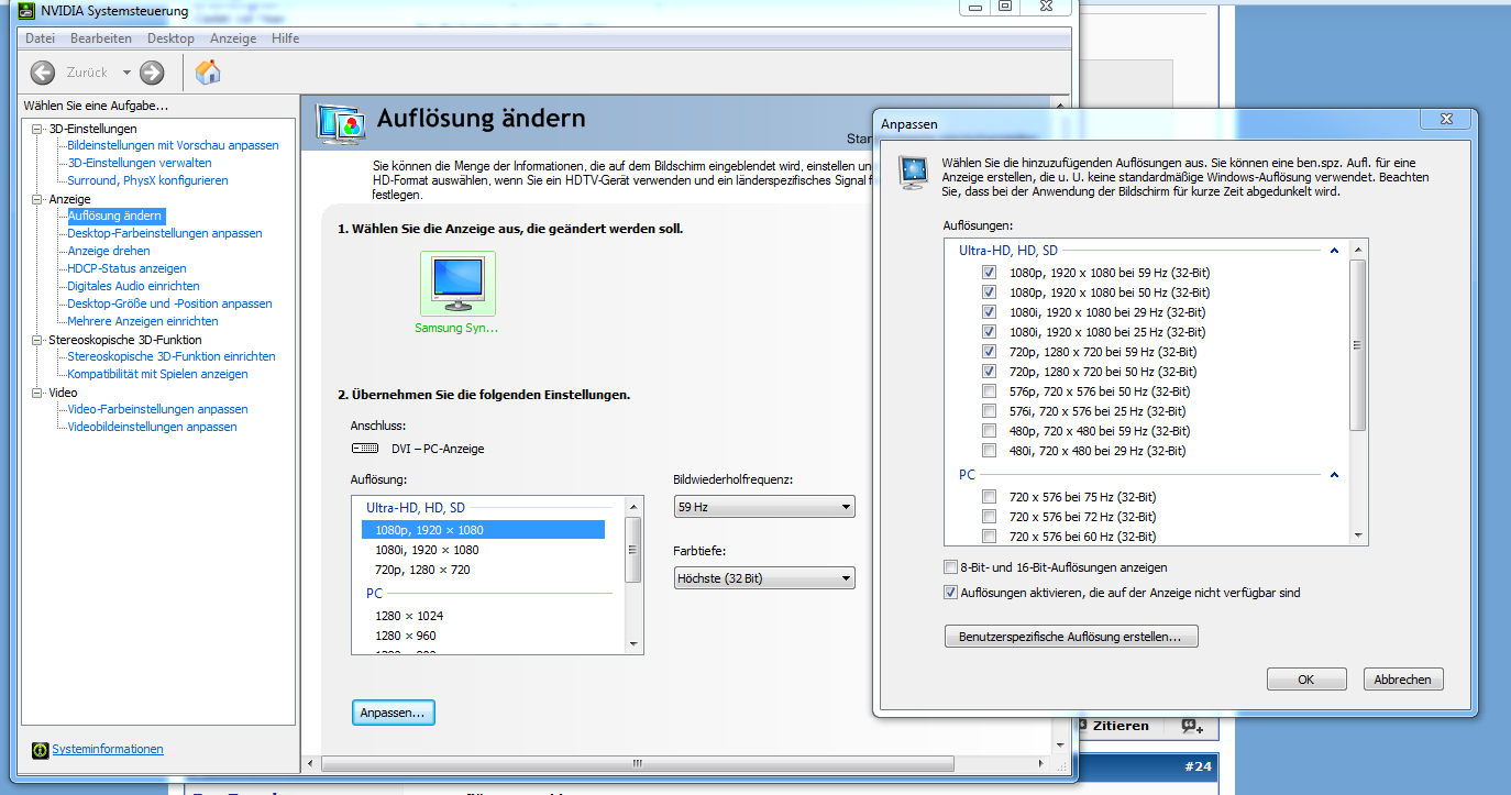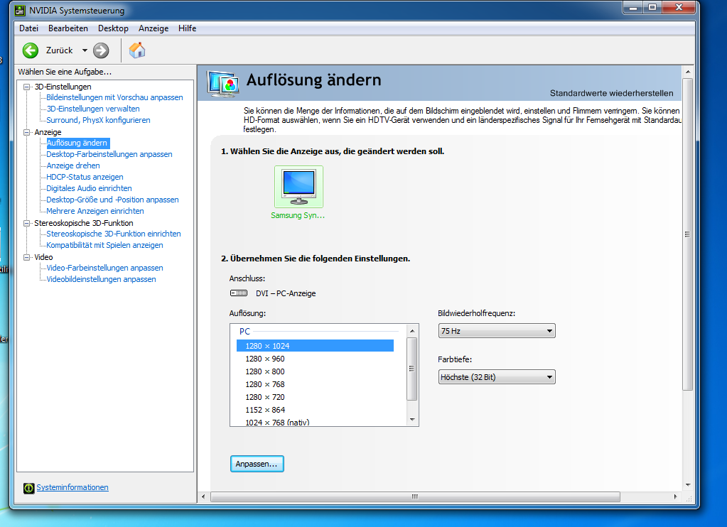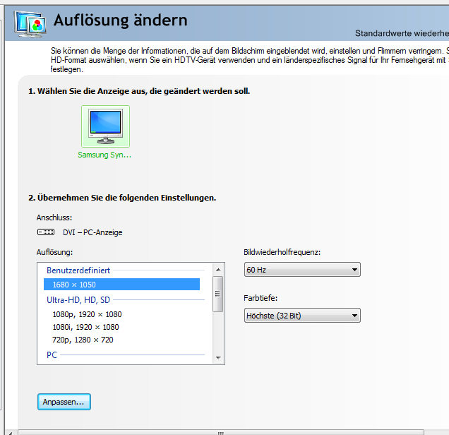 Ich kann ja über "Benutzerspezifische Auflösung erstellen" 1680x1050 60 hz manuell einstellen nur hab ich dann links und rechts schwarze Balken und so solls ja auch nicht sein oder?
