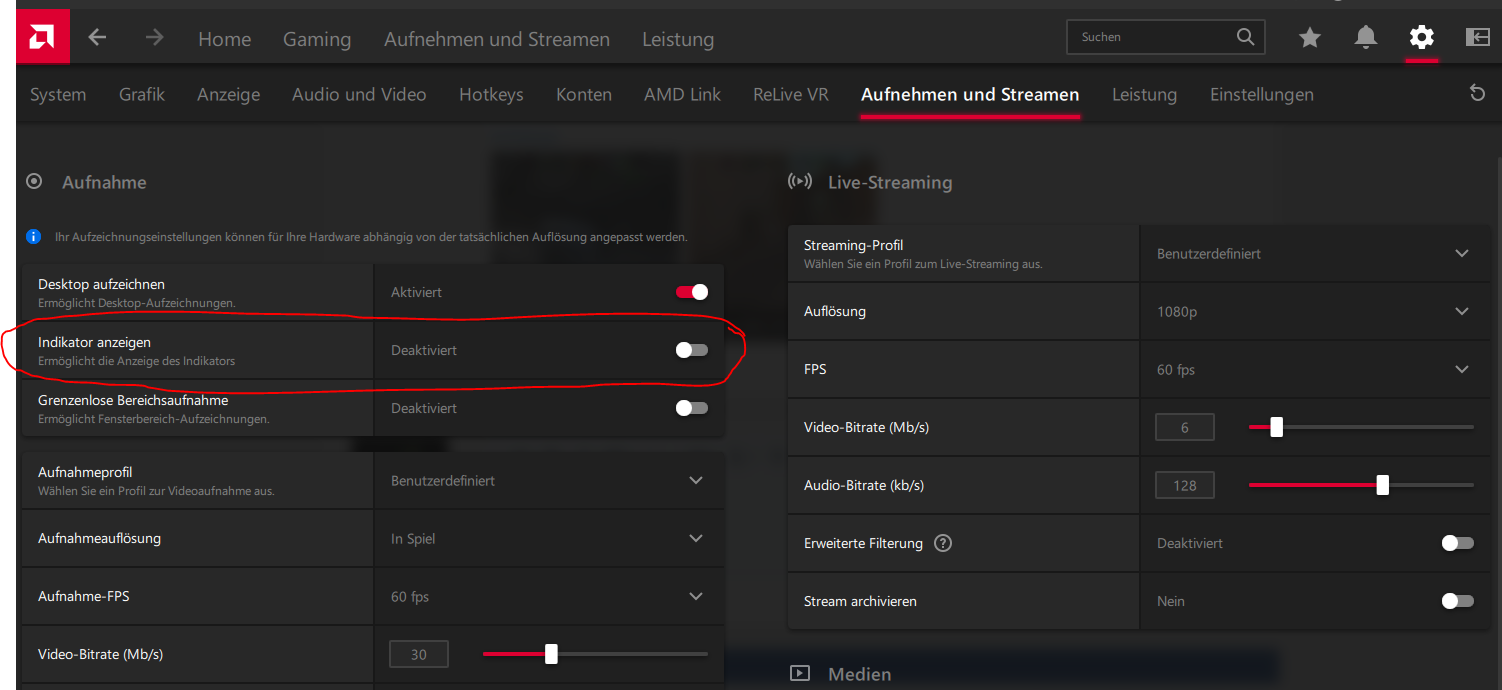 Allerdings vergesse ich oft genug OBS zu starten und, das liegt wahrscheinlich an meinem eigenen Unvermögen, finde ich die Qualität nicht so gut, wie über den AMD-Treiber.