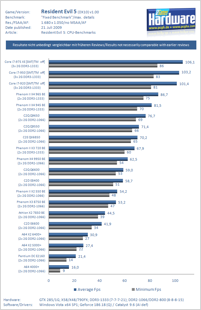 Ich pfeife auf Tests sondern sehe das am eigenen System und das sagt mir, dass es durchaus Spiele gibt die extrem von einem Quad profitieren. Nur kommt das halt auch auf das Spielverhalten an und kann nicht pauschalisiert werden. Dann versuch mal in ArmA 2 ne fette Schlacht zu bestreiten. Mein E8400 @ 4Ghz kapitulierte bei rund MAX. 20fps! Jetzt zocke ich es mit geschmeidigen MIN. 35fps - Settings die gleichen. SupCom auf einer 81km x 81km Karte verkam nach na Zeit (7 KIs, sehr großes Einheitenaufkommen) zur Diashow und die Sekunde im Spiel dauerte rund 3 reale Sekunden, jetzt ist das 1:1 ^^ Dann schau dir mal den neuen Resident Evil Benchmark an, die MIN FPS sind da bei einem Quad schon sehr viel höher - die max interessieren ja nicht so sehr. Sehr gut profitieren auch GTA IV und Prototype von einem Quad, aber beides sind Spiele die ich nicht spiele. Anno 1404 profitiert auch bei den MIN FPS enorm von einem Quad. Dann versuch da mal eine Stadt mit rund 10000 Einwohnern aufwärts auf eine DC flüssig darzustellen - der geht in die Knie!