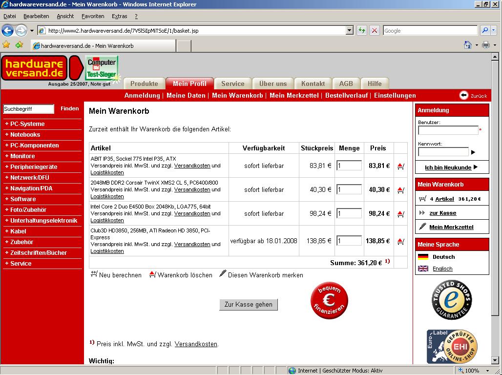 Der Rechner wird hauptsächlich für Spiele genutzt, vor allem neue (Crysis, Call of Duty 4, UT3 usw) in guter Qualität.