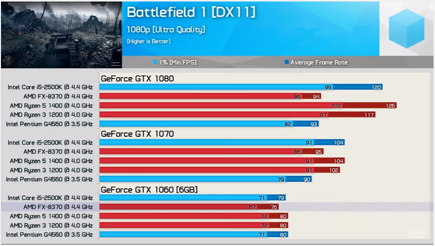 Im verlinkten Video sieht man deutlich wie sich die Leistung ändert, sobald eine stärkere GPU zum Einsatz kommt. Bei der 1060 6 GB liegen die Kandidaten alle so ziemlich auf der selben Leistungsstufe, aber bei der 1070 aber vor allem der 1080 sieht man die Leistungsunterschiede.Die Aussage, das die Grafikkarte 1/3 bis zu 2/5 des Budget einnehmen sollte, hat also wohl immer noch ihre Berechtigung.