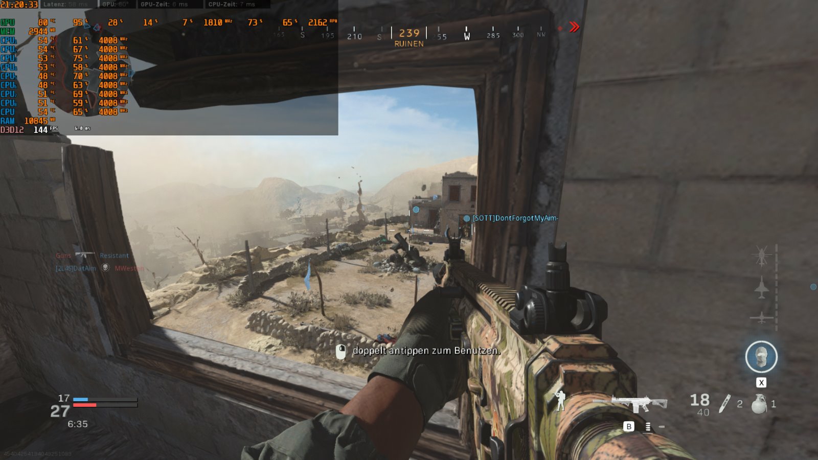 Und auch bis auf ein paar drops sind es meist konstant 144 FPS.