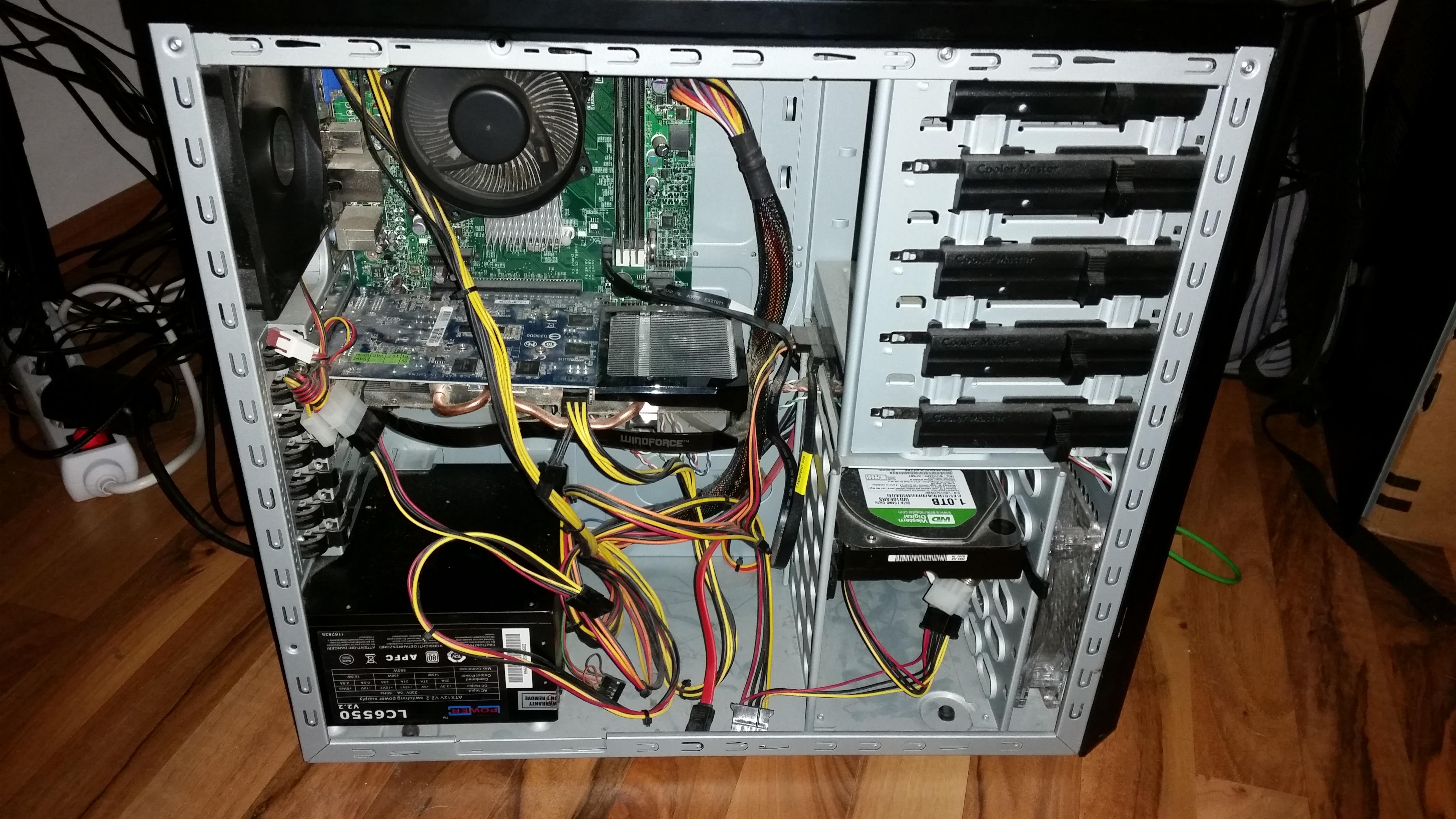 Ein Gehäuse habe ich, Netzteil mit 550W und 1TB SATA Festplatte.