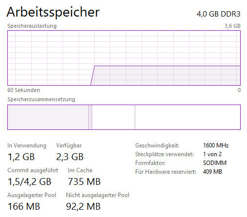 IntelCore i5 3320M @2,60 GHz, 4 GB DDR3