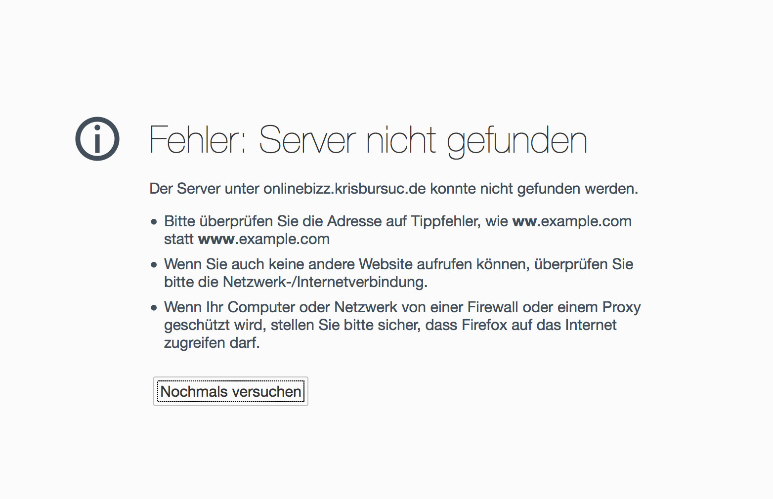Wenn ich nun diese Domain zum ersten mal aufrufe, erscheint ein Fehler (bei Dir wohl nun auch).