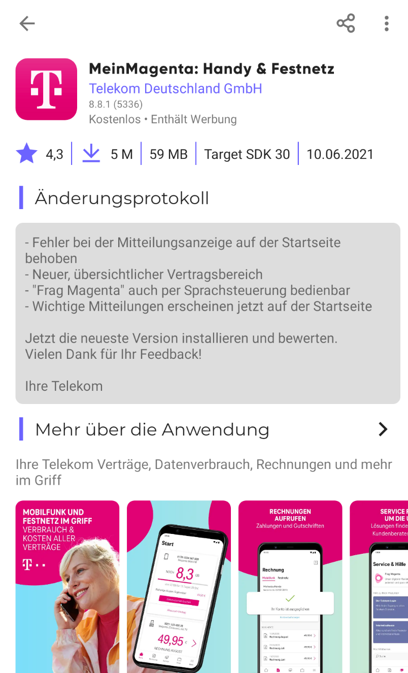 nutzt zufällig jemand den Aurora Store und kann mir sagen, ob er die Telekom Magenta App zum Download findet? Auf meinem Xiaomi Mi 9 (Android 10 Custom Rom) kann ich die App leider nicht finden. Seltsamerweise finde ich nur Magenta Apps für andere Regionen. Hängt das unter Umständen mit dem anonymous Login zusammen?