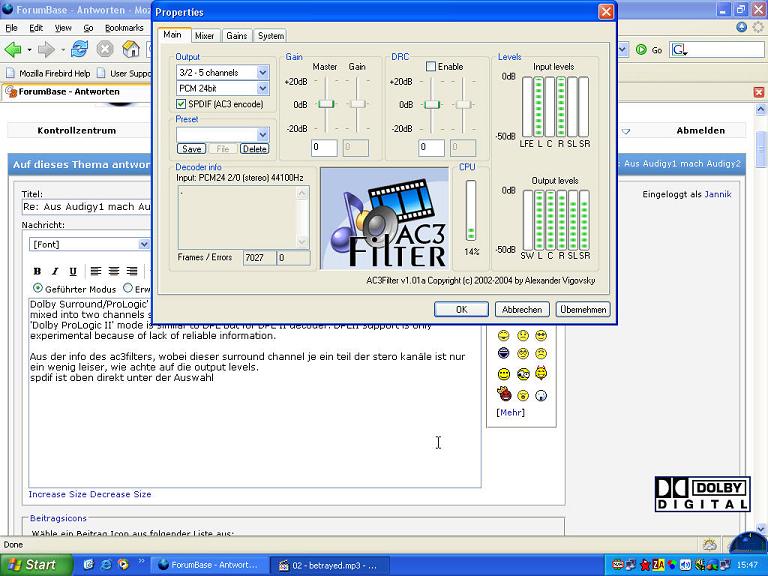 Jannik schrieb:Wähl 5.1 aus und makiere auch dieses spdif an, wenn ich das nicht mache spielt der auch auch nur noch stero.