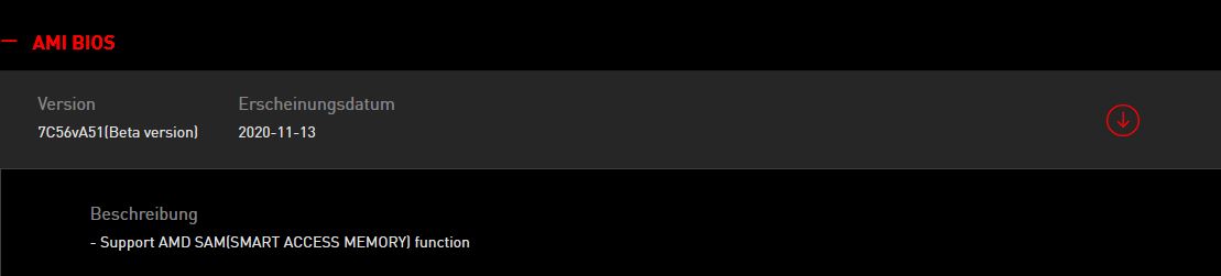 Bei meinem X570 Tomahawk Wifi wird ReSize BAR aka AMD SAM (Smart Access Memory) auch nicht angezeigt, wie ich an