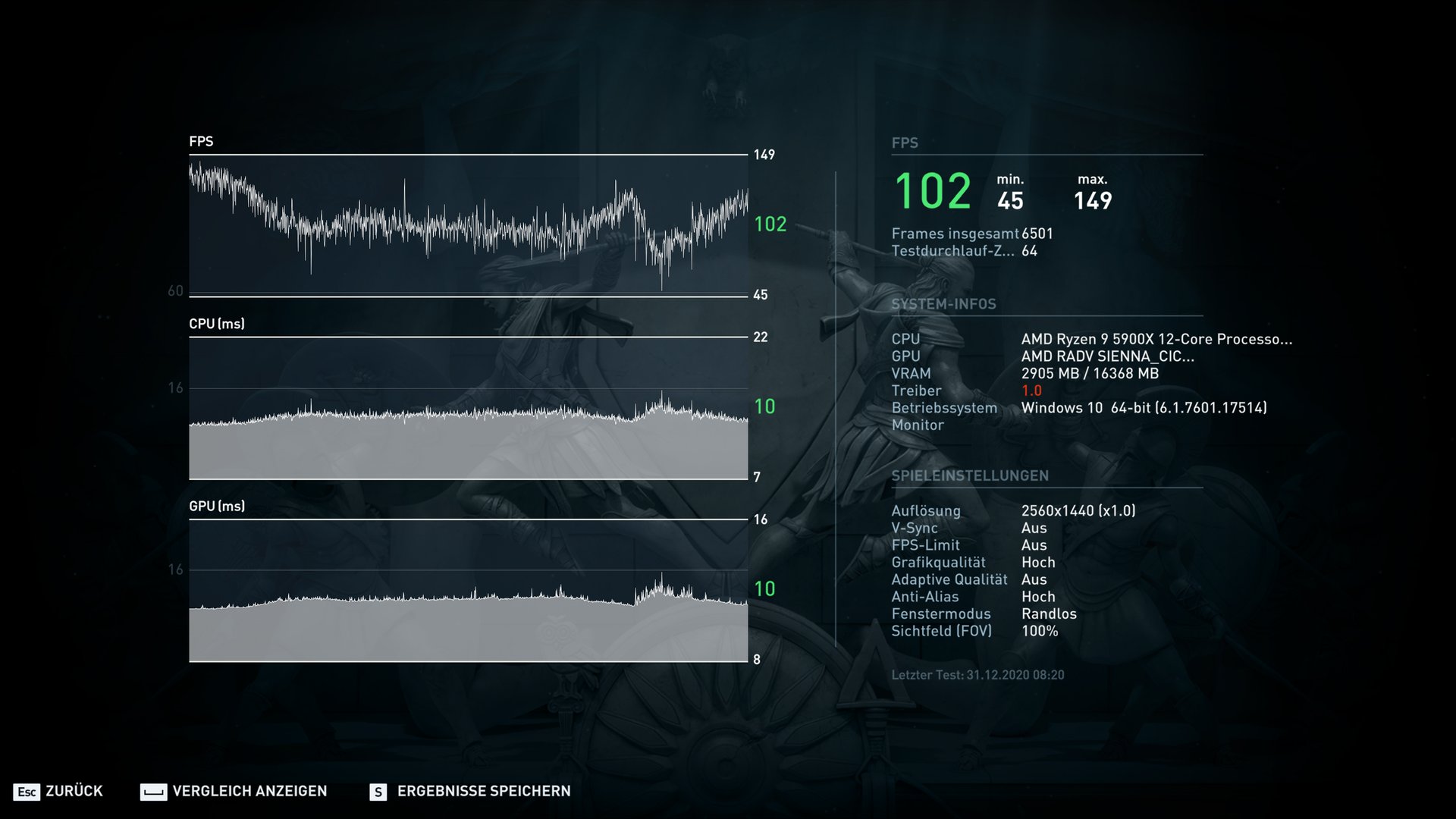 Habe mir vorhin meine neue 6800 XT eingebaut und mal RDR2 gebenchmarkt - es bringt es ordentlich was mit dem SAM: