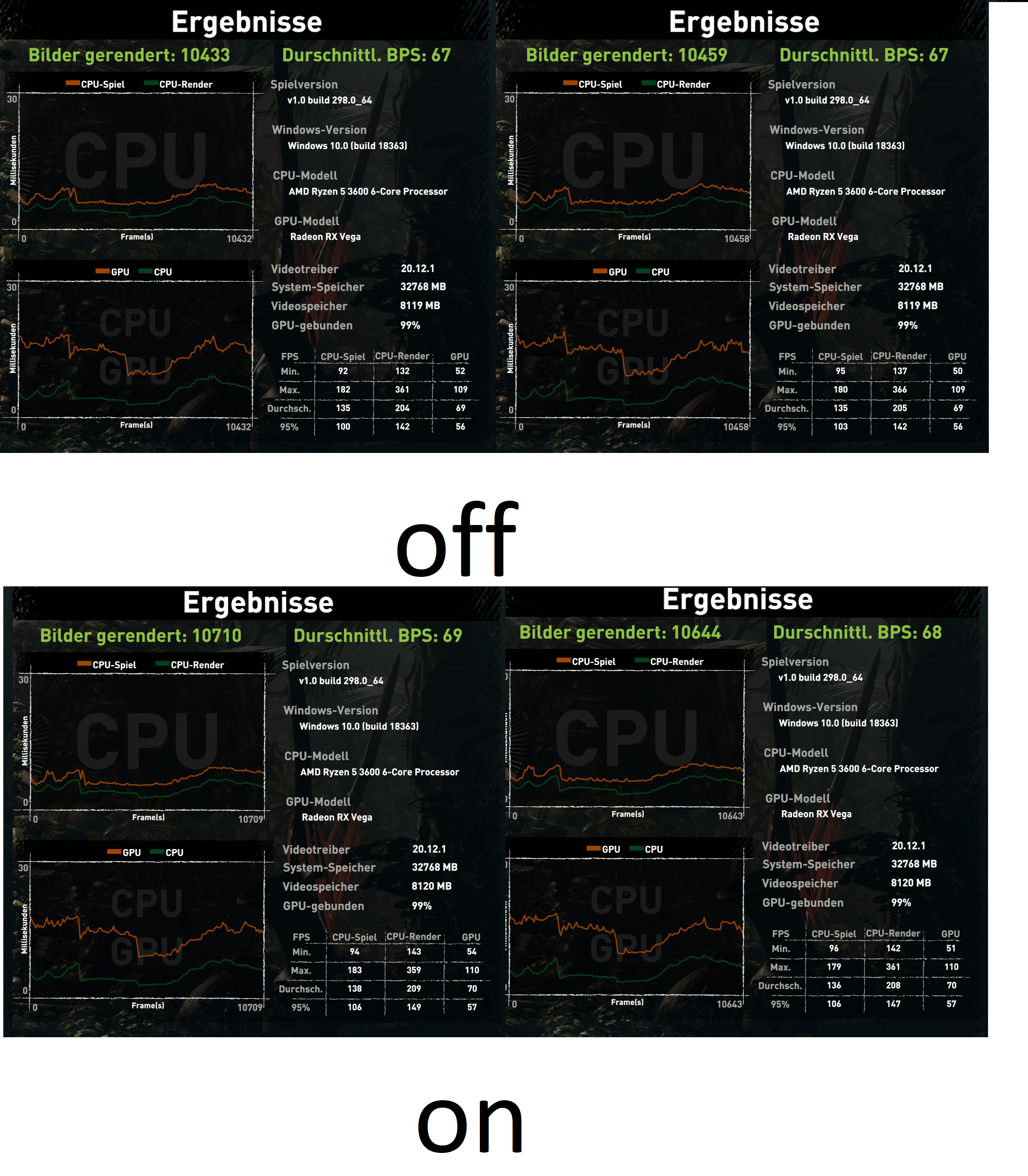 Fazit: Naja, geht und schadet zumindest nicht. Die Minimal FPS sind etwas besser, mein subjektiver Eindruck sind weniger Framedrops und ein etwas flüssigeres Spielgefühl. Weiß aber nicht, ob ichs merken würde wenn es heimlich jemand wieder abstellt im Bios.