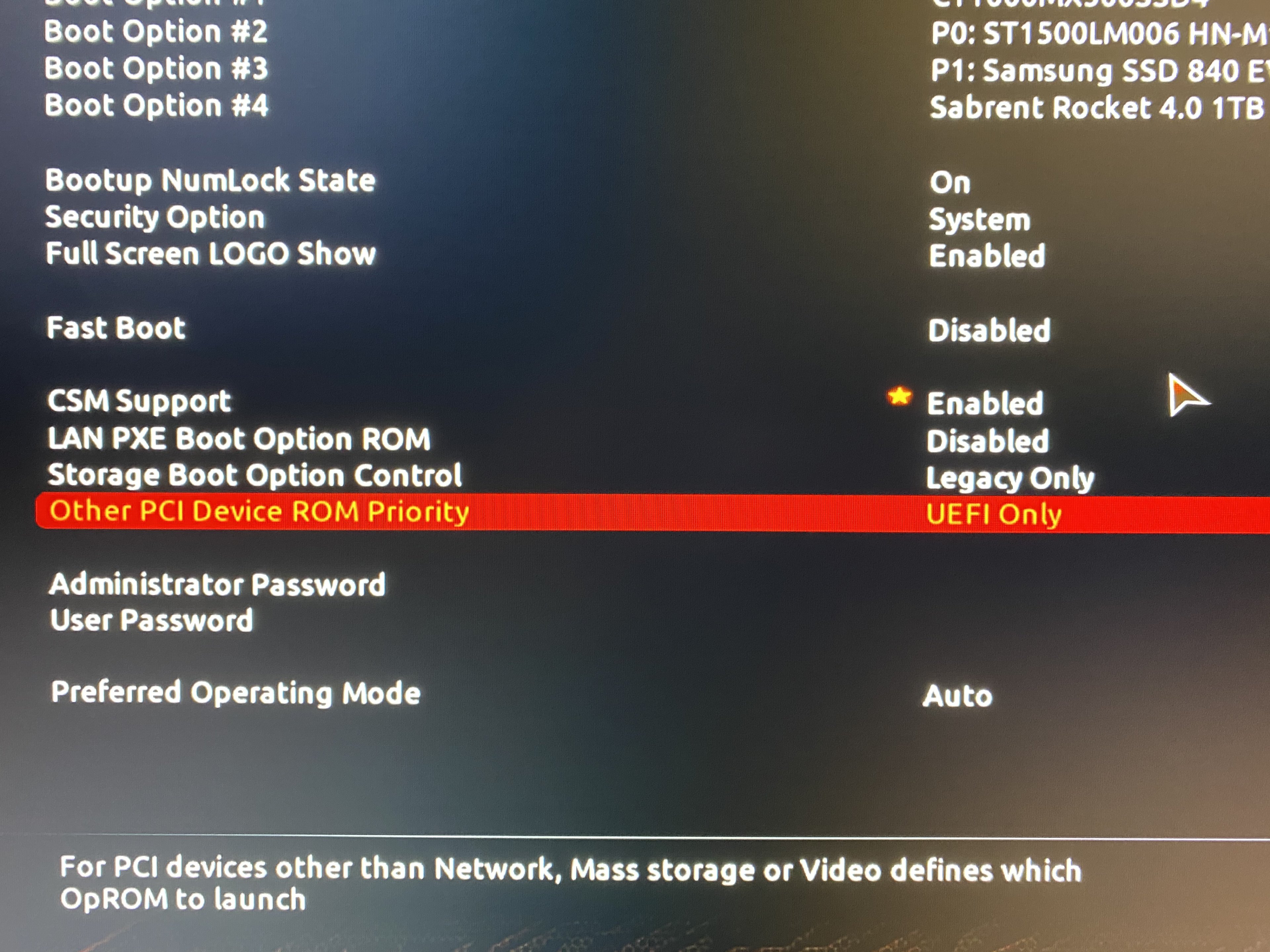 Grade noch ein Bild eingefügt^^StiFler91 schrieb:danke für deine Hilfe. Wenn ich auf CSM Support gehe, hab ich die zwischen LAN Boot, Storage Boot und Other PCI Device ROM Priority.