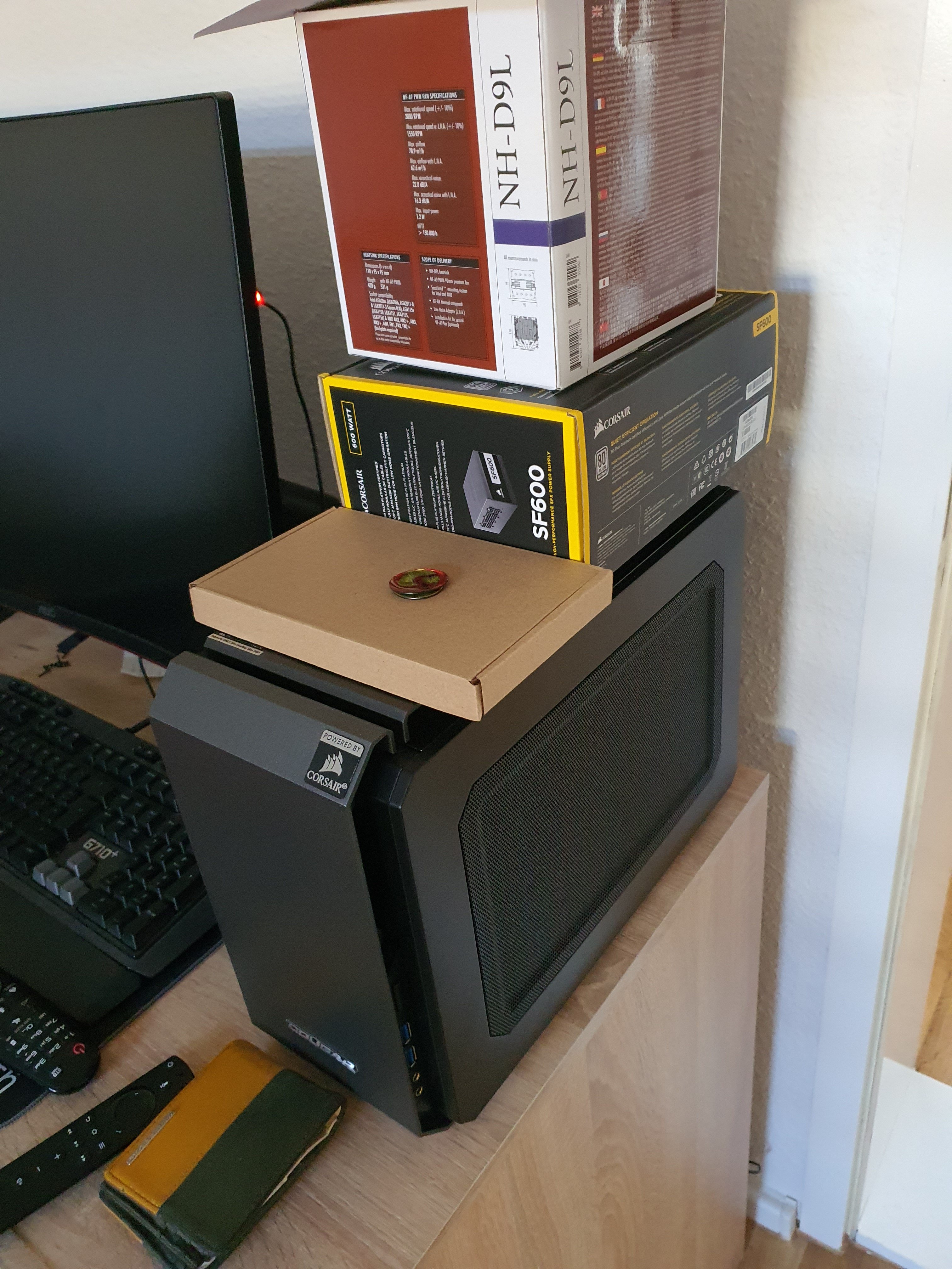 Hey cool, habe mir auch gerade einen gebaut, mit cougar qbx, zusammen mit Ryzen 3600X, Aorus X570 I Pro WIFI, 32 GB ddr4 3200, msi rtx 2080 super, und und nem Noctua D9L, läuft super, CPU temp 70c, gpu 73c