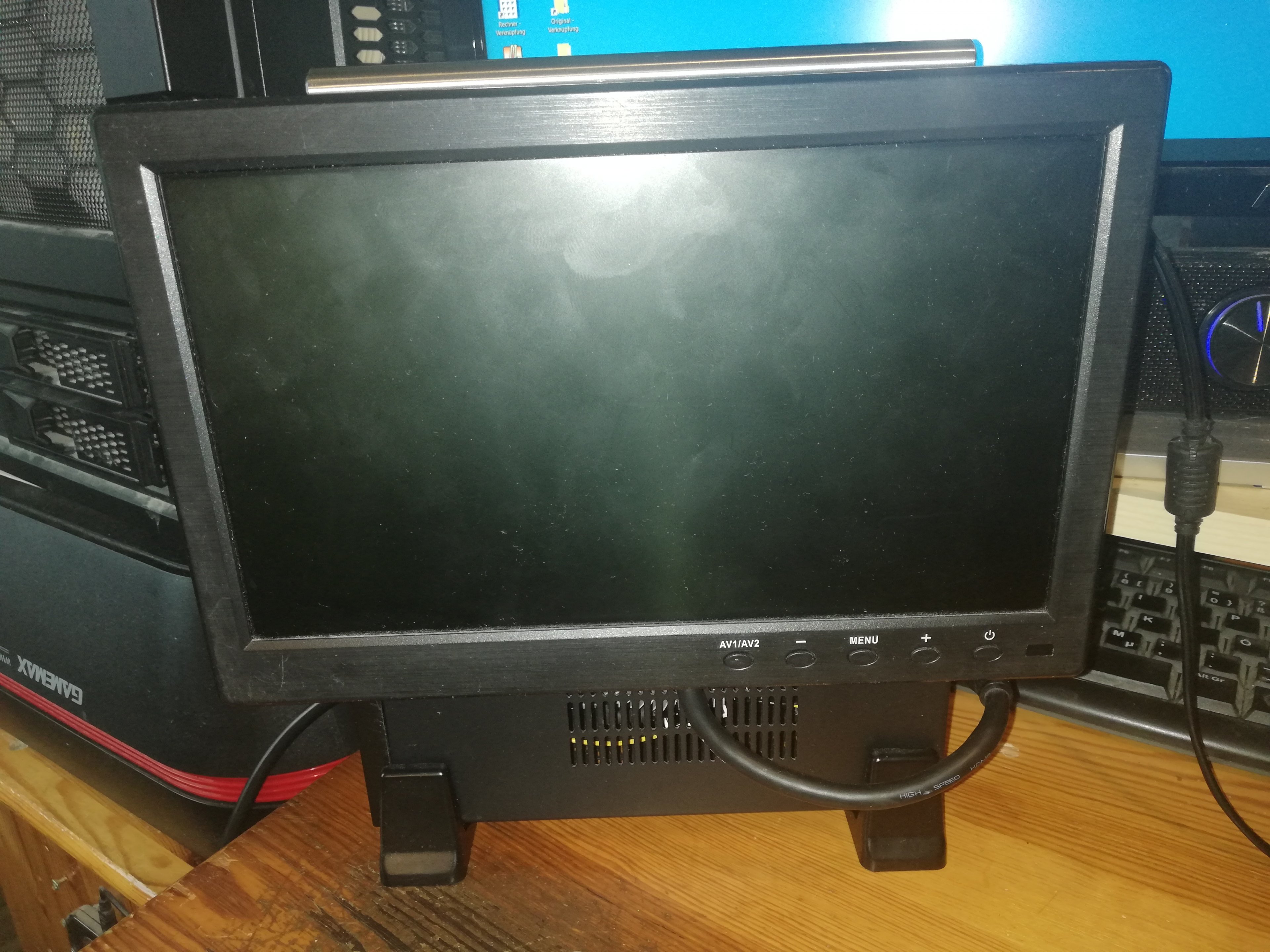 Das ist mein kleinster! Ein I7 6700k gedrosselt auf 2800Mhz, 32gb 3000Mhz Ram, Intel HD Grafik, 1x M.2 Pcie SSD und 1x Sata SSD, dazu ein 9" HD Monitor. Die Öffnung für den 120mm Lüfter hab ich heute morgen ins gehäuse geschnitten. Dazu sind oberhalb, unter dem Edelstahlgriff, 2x 40mm Papstlüfter verbaut, beide 20mm hoch.