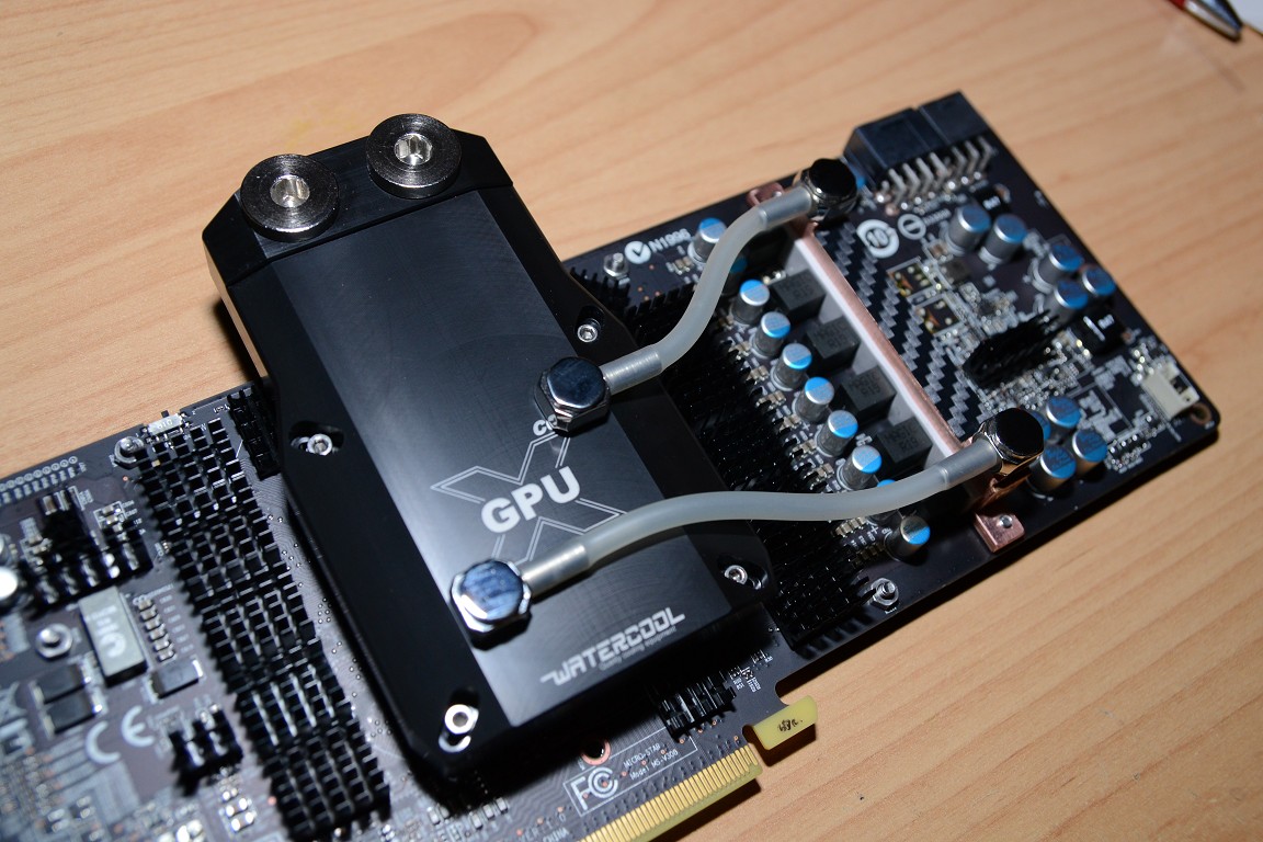 Wie sowohl der Autor in seinem Leserartikel als auch wir in unserer Meldung mehrfach geschrieben haben, gab es keinen Hersteller, der einen passenden Wasserkühler für das PCB dieser Karte anbietet.