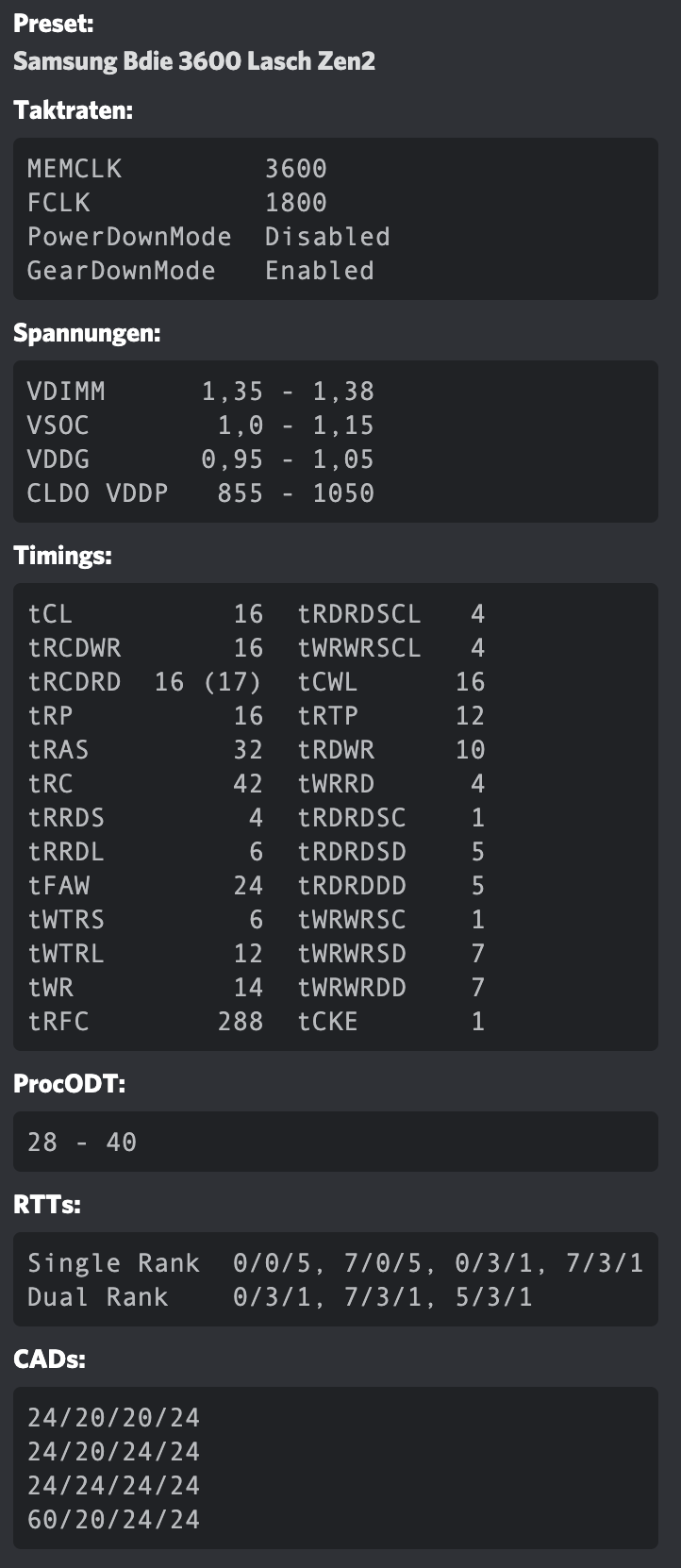 Alle Sets mit Samsung B DIEs kosten grob 210-250€ wovon jedes 3200ter Set angeblich locker auf 3600mhz und niedrigen Latenzen stabil läuft ohne viel umher zu testen.