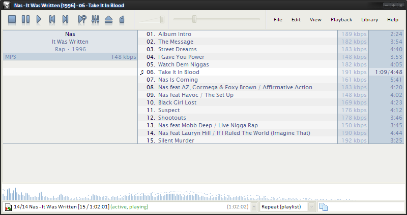 $tab(2)%codec%$tab(2)%bitrate% Kbit/s$tab(8)%samplerate% Hz$tab(3)%channels%$tab(14)%playback_time%[ / %length%]$tab(1)