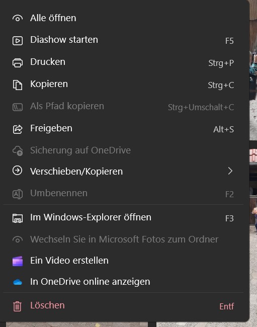 Wenn ich mehrere Fotos markiert habe und rechts Klick auf die Bilder, öffnete sich ein Fenster wo unter anderem Stand, ein Video herstellen oder so ähnlich. Das steht nicht mehr da.