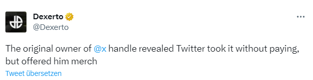 DFFVB schrieb:Was genau fidnest Du daran interessant? Bzw. welchen Teil verstehst Du nicht? Ein Mensch tritt arrogant und menschenverachtend auf (lässt die alten Twitter Chefs mit Securtiy aus dem Gebäude abführen, feuert die Legal Frau on air), bezahlt Abfindungen nicht, wollte aus dem Deal raus, feuert Leute die ihm auf die Frage warum er weniger Reactions bekommt, antworten, dass er ggf nicht so interessant ist,