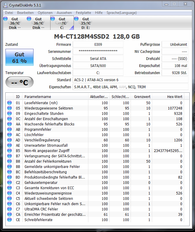 Ausfälle bei Crucial M4 128GB mit neuster FW 010G