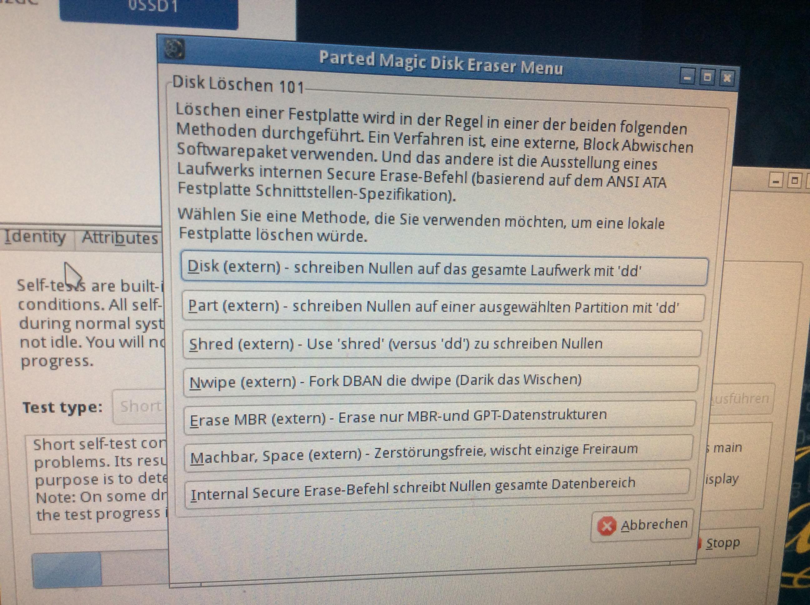 Parted Magic wird von einen Stick oder CD gebootet. Die Version ist für ein Secure Erase egal.