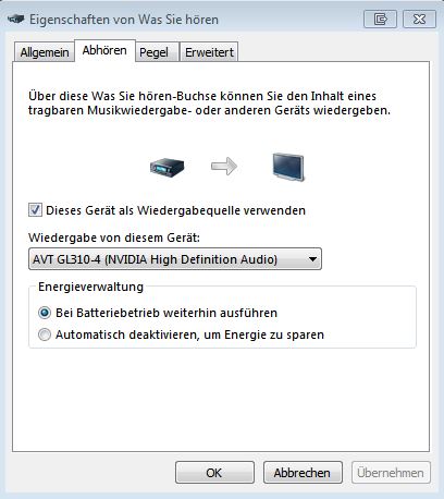 -Bei "Aufnahme" habe ich "Was Sie hören" gewählt und dort dann unter Eigenschaften bei "Abhören" die Checkbox bei "Dieses Gerät als Wiedergabequelle verwenden" markiert. Weiters habe ich dann das HDMI Gerät (also die Live Gamer Portable) bei "Wiedergabe von diesem Gerät" ausgewählt.