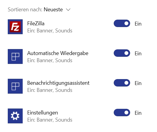 Ausgeschaltete Benachrichtigung für spezifische Software anschalten