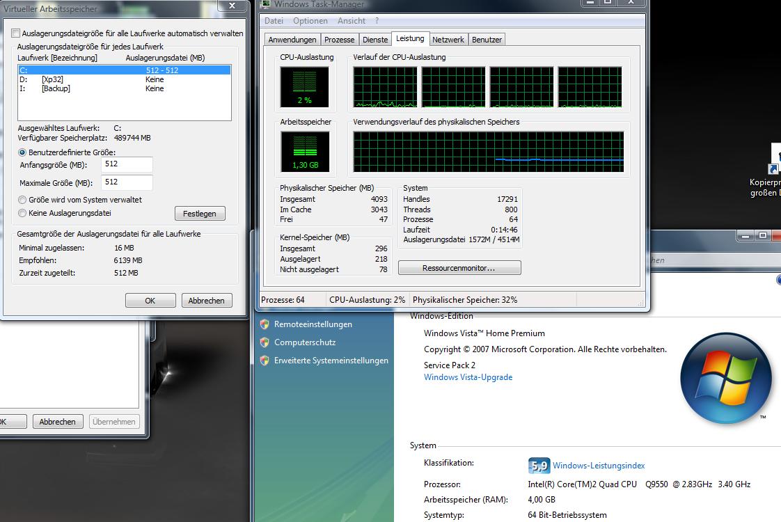 Ich habe in meinem Vista64 die Größe der Auslagerungsdatei auf 512MB eingestellt, der Taskmanager zeigt einen vollkommen anderen Wert. Wie kann das?