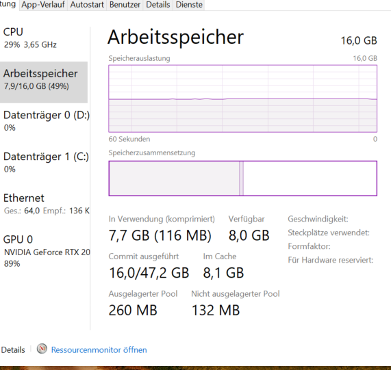 Stutzig wurde ich, nachdem ich im Afterburner beim spielen die Auslastung der Auslagerungsdatei gesehen hatte.