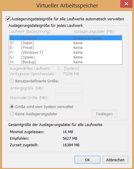 Wäre die Auslagerungsdatei aber 12 GB groß, hätte die Speicherverwaltung keine Probleme, alles in der Auslagerungsdatei zu halten.